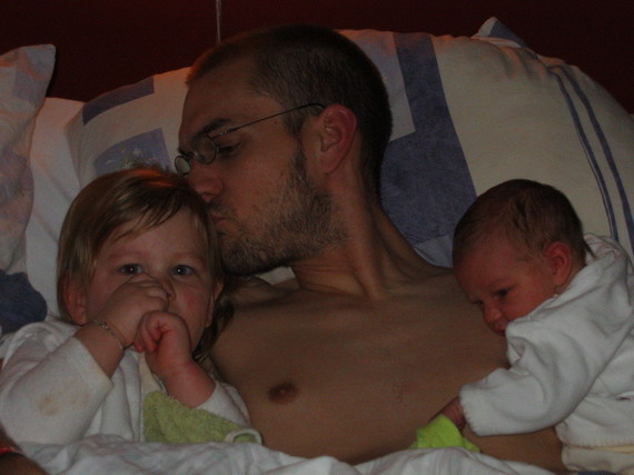 Foto 26: Papa met twee zieke meisjes.. even knuffelen in bed |
